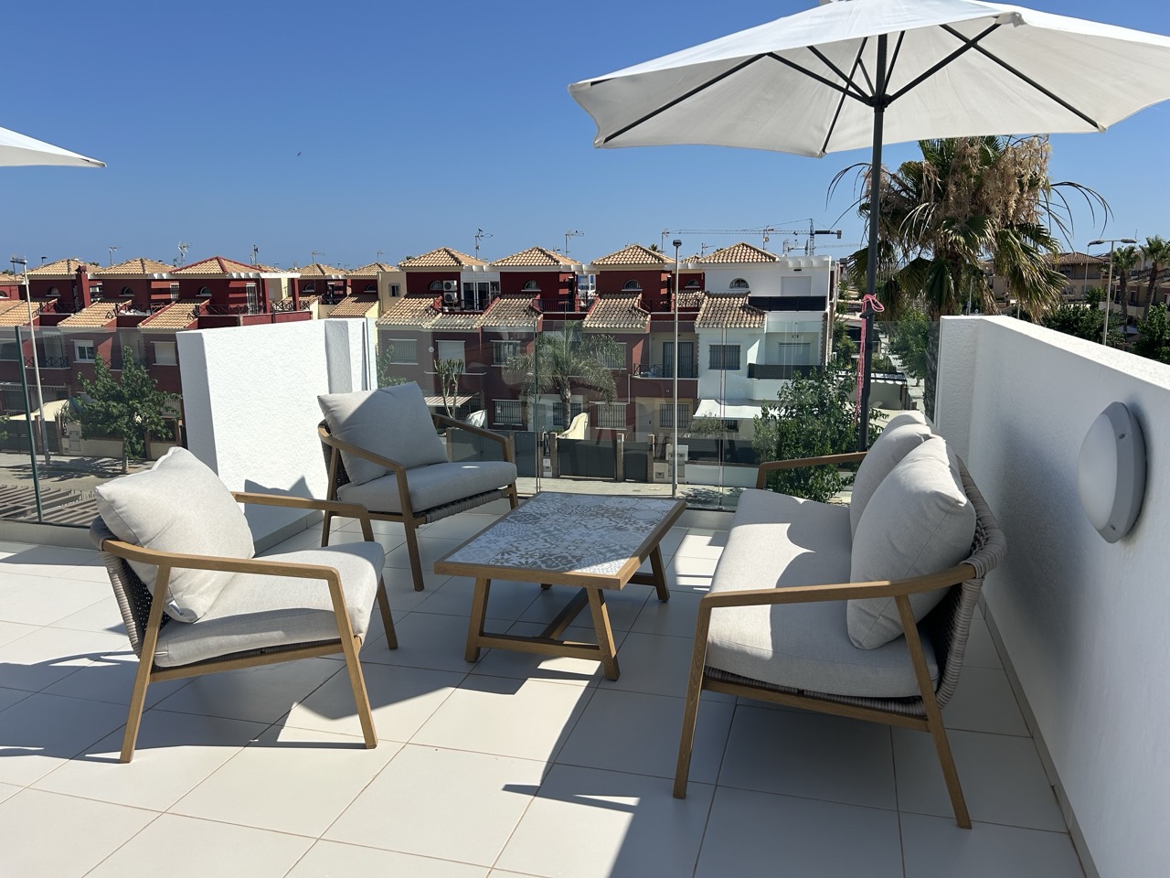 1,5 km ovan La Belle Plage hittar man Pilar de la Horadada, en liten by med huvudgata och torg med restauranger och caféer samt både stora och små affärer. Strax söder ut ligger San Pedro som är lite större samt är känt för sina saltsjöar och mineralbad - en lång pir tar er ut på de yttersta sandynerna - ett givet utflyktsmål. Vid hamnen finns många restauranger och ofta tivoli för barnen. Promenera 15 minuter uppför kusten och man är i Torre dela Horadada, vid hamnen finns ett fantastiskt café med de bästa glass vi har ätit, på torget hittar man ett större utbud av restauranger i alla smaker. Ta bilen till Torrevieja och flanera på strandpromenaden eller ta en bit mat på någon av de många barerna, eller åk till Cartagena och besök den antika romerska amfiteatern för heldagsäventyr. För den shoppingintresserade så är La Zenia köpcentrum ett måste - här finns allt och lite till - 15 minuter från solstolen.